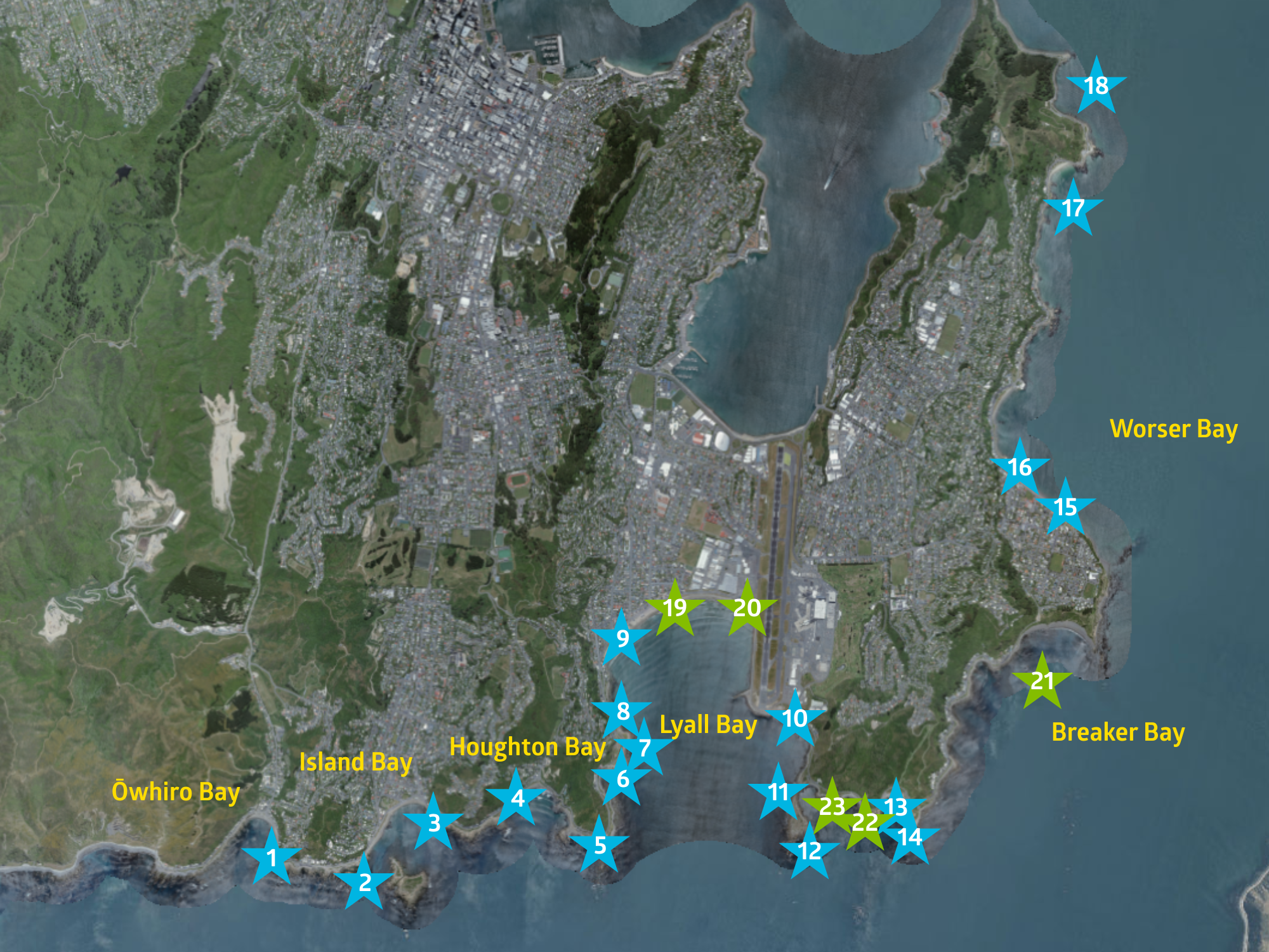 | 19 | Lyall Bay at Onepu Road | No sample taken | 200 | <4 | 4 | < 4 | 8 | 8 |